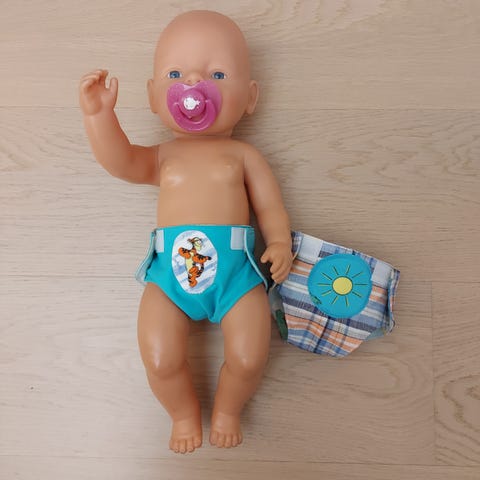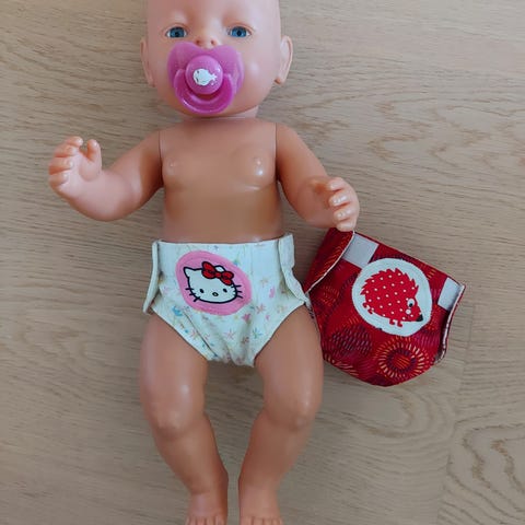 Myydään itse ommeltuja Baby born nukelle (43cm) sopivia kestovaippoja. Vaipoissa on kunnon tarranauhakiinnitykset eli sopivat hyvin leikkeihin ja pysyvät kiinni. Istuvat hyvin nukelle ottaen huomioon nuken liikkuvuuden eli menevät myös legginsien alle mukavasti.