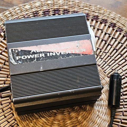 Alle kymmenen kertaa ladattu ja käytetty virtalähde. Tupakansytytinliitos.