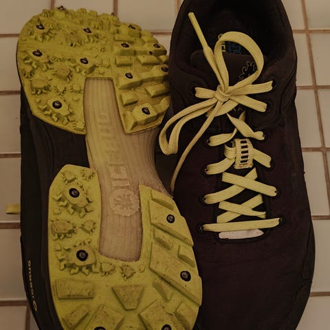 Käytetyt mutta ehjät kengät. Nasta lenkkarit. Koko 44. Nouto Viertola.
