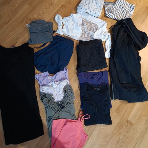 Yli 60 vaatetta, housuja, mekkoja, paitoja, jakkuja, toppeja yms.
