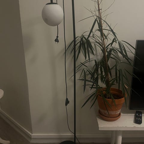 Toimiva lamppu, valaisin. Vähän kuin samettipintainen kupu noin 48 cm. Jalkaosa noin 125 cm. Johto ainakin 150 cm (tarkistan). Lattiakatkaisin. Postitus (36e), tuonti (pk, 10e) tai haku.