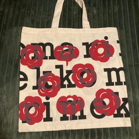 Myydään Marimekon logokassi,luon.vaalea/violetti,
