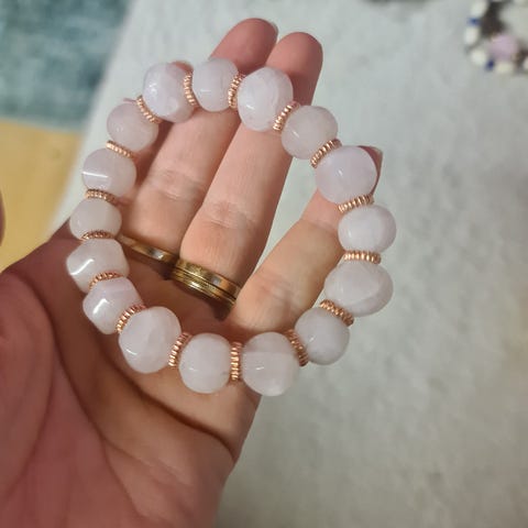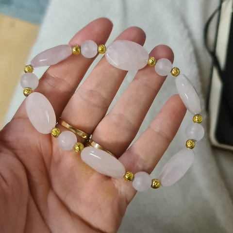 Hello kitty- ja kukkakoristeella oleva ruusukvartsikäsikoru. 🩷🩷