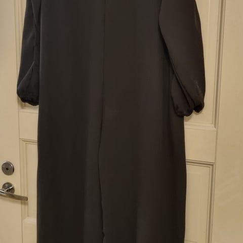 Musta jumpsuit, jossa on vetoketju sivussa ja napitus edessä. Koko 34/xs. Materiaali 100% puuvillaa.