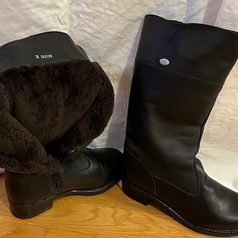Laadukkaat, pitkävartiset Friitalan nahkasaappaat. Koko 36. Nauha- ja vetoketjukiinnitys. Irrotettavat nahkaiset pohjalliset. Ulkopohja pitävää kumia. Uudet saappaat - näitä on sovitettu ja testattu sisätiloissa, mutta liian pieniksi havaittu. Koska palautus ei enää onnistunut, myydään tarpeettomana. Pyydettäessä lisää kuvia. Saappaita saa tulla sovittamaan!