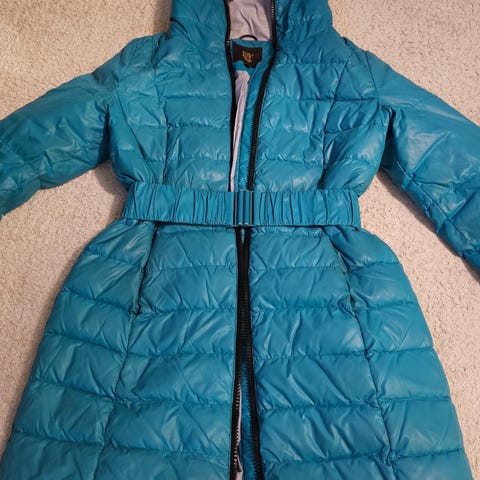 H&M toppatakki, talvitakki naisille, koko 36. Takki on tumman sinisen värinen ja valmistettu polyesteristä.
