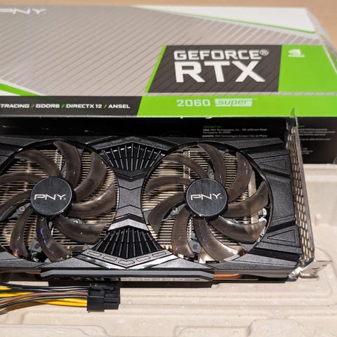 RTX 2080 näytönohjain. 8 gb grafiikkamuistia, liitäntöjä 3x DisplayPort, 1x HDMI, 1x USB-C. Peräisin Alienwaren prebuilt-koneesta.