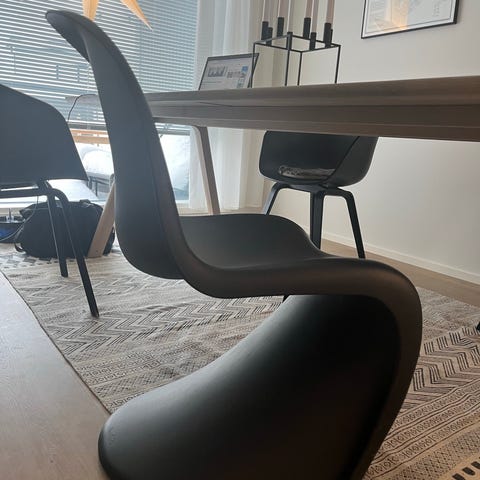 Mustat Panton tuolit 2 kpl, Hinta 220€/kpl. Aitous tarkistettu Vitralta.