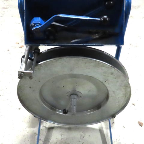 Vannekone ja vaunu, vaunusta toinen pyörä rikki. Laatikossa myös vähän vannelukkoja.