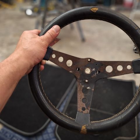 Hyvä kuntoinen, Datsun Cherry 1-koppaisen nahkainen ratti.
