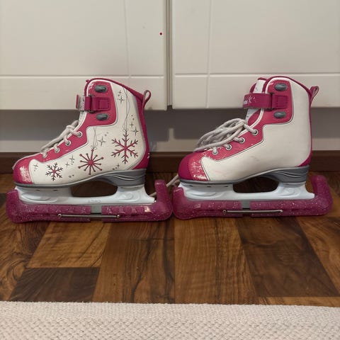 Tyttöjen luistimet, koko noin 34, pohja väljästi 21 cm. Voidaan myös lahjoittaa tarvitsevalle. Vien loppuviikosta spr:lle jos kukaan ei tarvi.