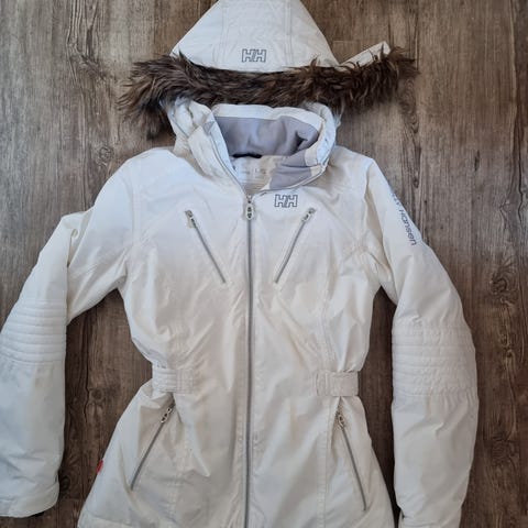 Myydään upea HELLY HANSEN HELLYTECHIN valkoinen/ tummanharmaa lasketteklutakki.