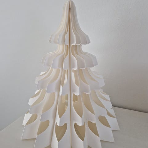 Myynnissä uusi tummanvihreä tukevasta kartongista tehty paperikuusi, jolla korkeutta 36cm. Omaan kotiin olikin liian suuri. Kiinnitetään tukevalla kaksipuoleisilla tarroilla.