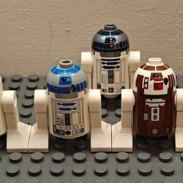 Kirjava kokoelma "tutun näköisiä" droideja. Muuten kaikki hyvässä kunnossa, paitsi valkoisella alkavia halkeamia vatsan alueella.