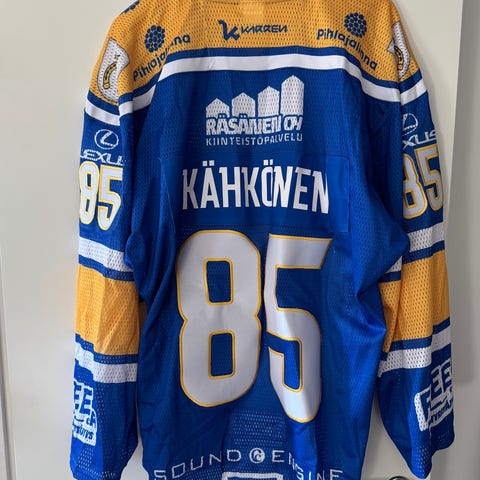 Joona Tammisen kaudella 2021-2022 käyttämä Kiekko-Espoon kotipelipaita. Mukaan tulee aitoustodistus.