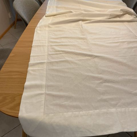 Iso tummansininen pöytäliina. Voi käyttää molemmin puolin. Hieno jacquard kuosi.
