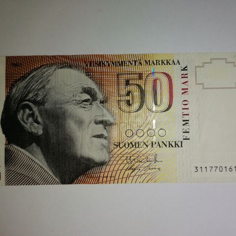 Markka-ajan viimeinen 50 mk seteli. Arkkitehti Alvar Aalto.