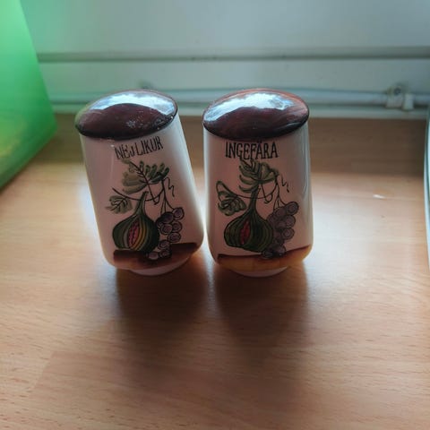 Vanhat 1960- luvun lasiset maustepurkit. Myydään yhteishintaan.