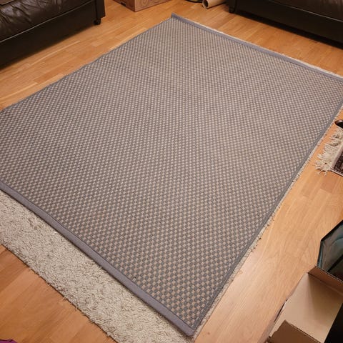 Puuvilla hamppu 150x210, en saanut hyvää kuvaa itse. Ostin toiset erilliset kun ei miellyttänyt kyseinen väri.