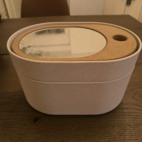 Täysin käyttämätön. 20cm leveä, 8cm syvä ja 10cm korkea. Erittäin monikäyttöinen ja kätevä, sillä puuosat voi myös irrottaa jolloin tilavuutta saa lisättyä.