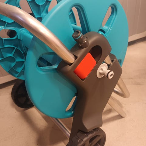 HOHA letkuvaunu, joka sisältää vihreän puutarhaletkun. Letkuvaunu on valmistettu metallista ja siinä on pyörät helpottamaan siirrettävyyttä. Letkua n.15m