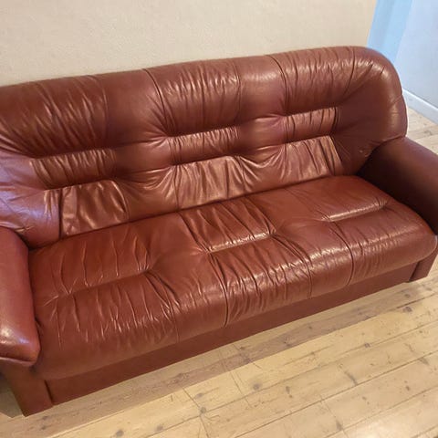 Retro nahkasohva kalusto. Pehmusteet ehjät ja tuolit ehjät. Sohvan rungon takaosa vaatii kuvan mukaista korjausta, mutta käsistä näppärä saa varmasti parsittua kasaan. Käsiosat puuta. Jos arvostat vanhaa ja laadukasta nahkasohva, niin tässä unelma kotiisi. Tarjoa. Nouto mahdollisimman pian.