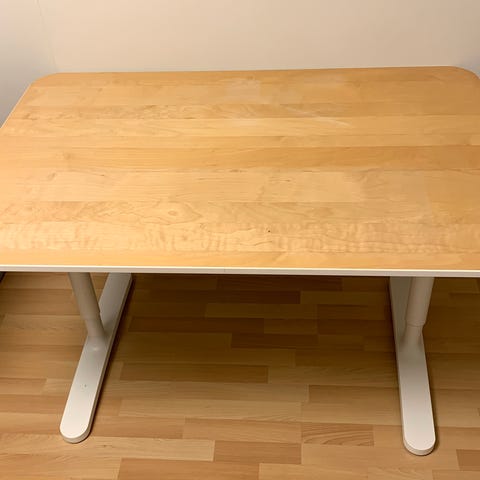 Hyväkuntoinen Ikean valkoinen Bekant työpöytä. Mitat ovat leveys: 120 cm, syvyys 80 cm, ja korkeus 65-85 cm. Tämän korkeutta voi siis säätää pöydän jalkojen pohjassa olevilla ruuveilla. Voin purkaa valmiiksi kuljetusta varten. Vain nouto sekä käteismaksu.