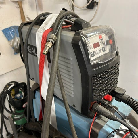 Vähällä käytöllä ollut plasmaleikkuri omalla kompressorilla 40a, Max 10mm, 4m poltin.
