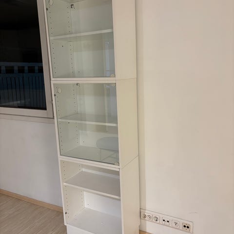 Muurame hyllykkö, jossa on kaksi erillistä moduulia sokkelin päällä. Valkoinen väri ja yksinkertainen, kulmikas muotoilu tekevät siitä monikäyttöisen kalusteen moneen tilaan. Hyllykkö on suunniteltu niin, että se voidaan pinota tai käyttää erikseen, mikä lisää sen muunneltavuutta ja käyttömahdollisuuksia. Muurame on tunnettu suomalainen valmistaja, joka on erikoistunut modulaarisiin kalusteisiin, ja tämä hyllykkö edustaa heidän minimalistista ja toiminnallista tyyliään. Hyllykkö on hyvässä kunnossa, mutta siinä on käytön jälkiä, kuten pieniä naarmuja ja kulumia. Yleisilme on kuitenkin siisti ja käyttökelpoinen.