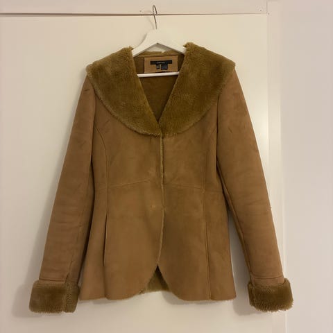 Hyväkuntoinen ihana musta Zaran jakku, jossa etuosa tekokarvaa, hihat ja takaosa joustinneuletta. Koko M.