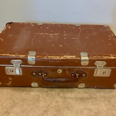Laukku, pieni vintage rottinkimatkalaukku - small vintage wicker box 31x27x15cm