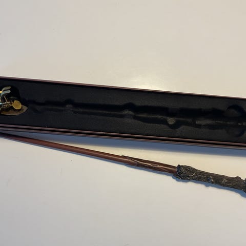 Albus Dumbledore taikasauva alkuperäisessä pakkauksessa. Puinen taikasauva, jossa yksityiskohtainen muotoilu. Sopii keräilyyn tai roolileikkeihin.