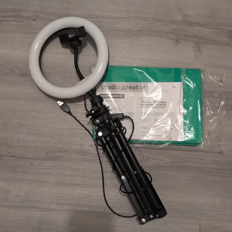 Täydellinen kotistudiosetti, jonka avulla voit luoda erilaisia videoita! Sisältää säädettävän (max.80cm) jalustan puhelinpidikkeellä, monivärisen LED-rengasvalon, jossa on 12 väritilaa sekä vihreän taustakankaan.
