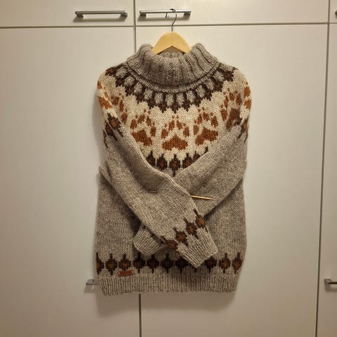 Myydään uusi islantilainen käsityönä valmistunut villapaita / kaarrokkeneule koko S/M.