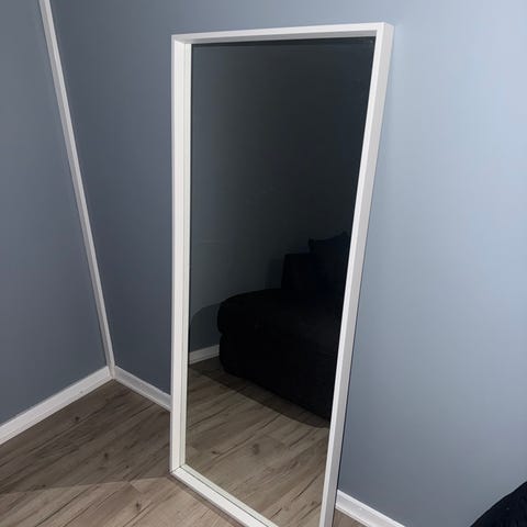 Jysk peili, jossa koristeellinen kehys. Kehyksen väri hopea ja siinä on yksityiskohtaisia koristeluita. Maaliskuuta lähtenyt yhdestäkohti vähän irti.