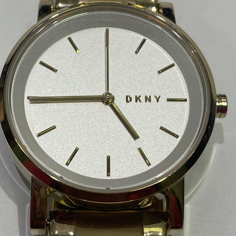 Kaunis naisten hopea DKNY rannekello, laatikko, ohjekirja sekä jatkopala. Kellotaulu helmiäis tyyppinen sisältää myös päivämäärän.