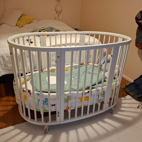 Myydään Stokke sleepi pinnasänky, käytönjälkiä on nähtävissä. Sänky on kertaalleen maalattu, maalausjälkiä nähtävissä. Toimii kuitenkin oikein hyvin. Mukaan Ikean reunansuojus.