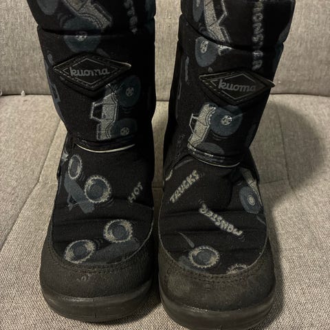 Kuoma lasten talvikengät unisex, koko 27. Kengissä on lämmin vuori ja ne soveltuvat kylmiin olosuhteisiin. Väri on pinkki ja materiaali kestävää talvikäyttöön suunniteltua materiaalia. Ollut käytössä yhdellä lapsella. Irtolikaa pinnassa.