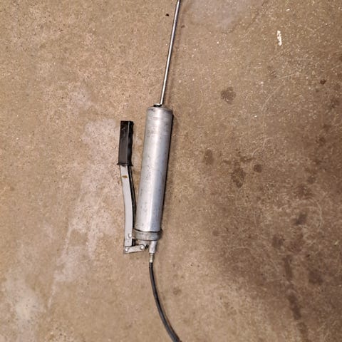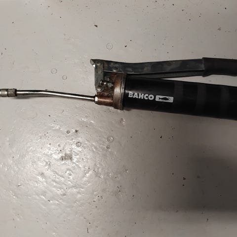 Vanha, mutta siisti rasvapuristin, vihreässä metallilaatikossa. Laatikon mitat; pituus 35,5 cm, leveys 12,5 cm ja korkeus 8 cm.