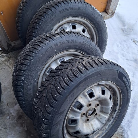 Siinä ois Toyota Carina 2 orkis alut jossa on Hankook talvirenkaat alla