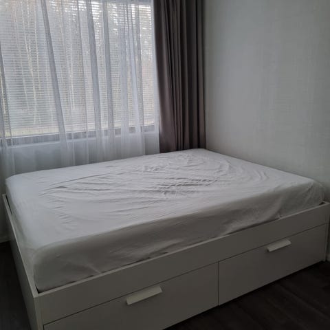Ikean koivupuinen parisängyn runko, patjan koko 160cm x 200cm. Hyvässä kunnossa! Pohjasäleikkö parempi Lönset-malli. Tosi hyvä sänky, on vaan liian iso meille makkariin. Reilun vuoden nukuttu. Patja ei kuulu kauppaan. Koirakoti, mitään muita ötököitä meillä ei ole!