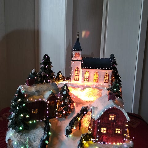 Tokmannilta viime jouluksi ostettu suuri ja näyttävä joulukylä. Täysin toimiva, nyt vaan tilanpuutteen vuoksi uuteen kotiin.