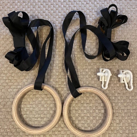Uudet paketissa olevat tuotteet. Löytyy myös musta puinen leuanvetotanko ja lukittavat kiinnikkeet, nämä mittatilaustyönä, 80,8cm oviaukkoon (+40e)