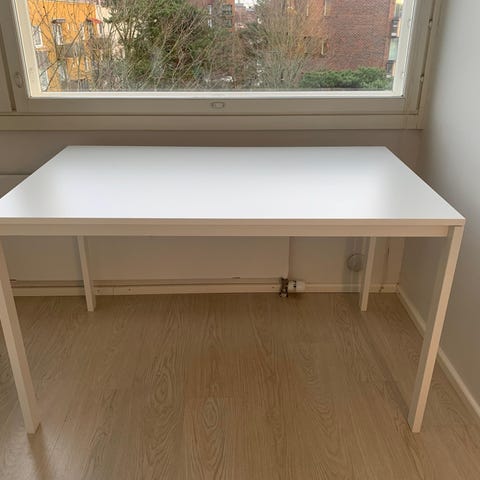 Ikean valkoinen ruokapöytä. Jonkun verran käytön jälkiä. Kuvassa näkyvä pieni jälki reunassa. Muutoin siisti.