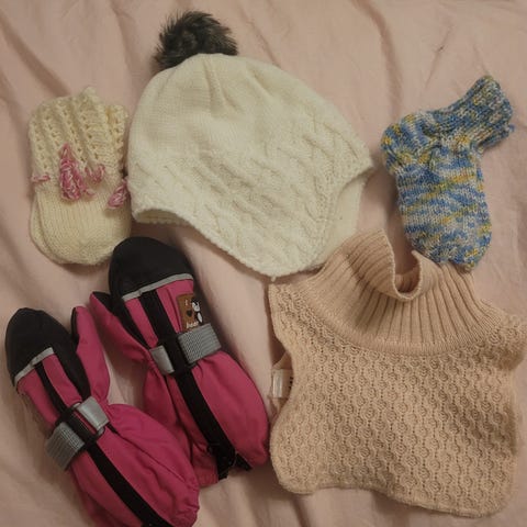 Käyttökelpoiset talvirukkaset vauvalle. 0-1 v. Käytettynä tulleet, vähäisessä käytössä meillä olleet.