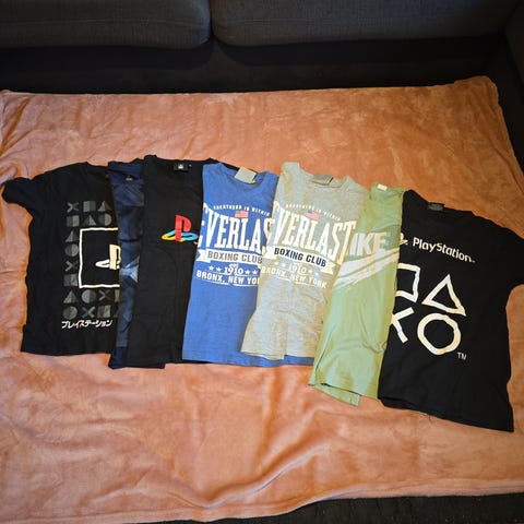 Neulepaitaa pidetty paristi, harmaa gollegepaita uudenveroinen ja sinistä pidetty ehkä 5 kertaa