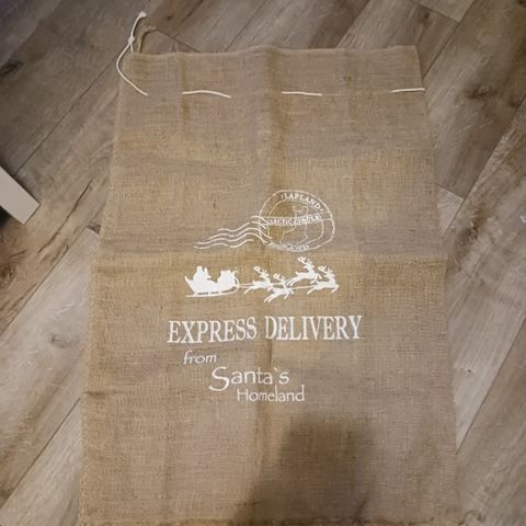 Kankainen joululahjasäkki. Säkkikangaspaloja joissa päät ommeltu. Koot 2 kpl 120x90cm ja 1kpl 100x90cm. Yksittäin 5e/kpl kaikki kerralla 13e