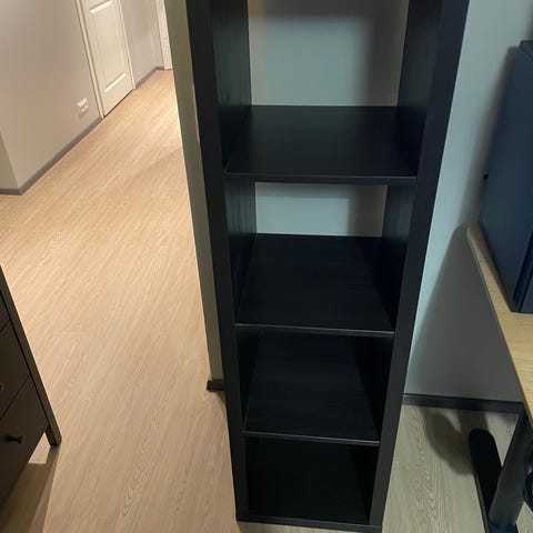 Ikea Kallax-hylly seuraavaan kotiin. Toiminut meillä tilanjakajana lastenhuoneessa ja on tosi tilava vaikkapa leluille. Hyllyn päällä kaksi ruuvinreikää, jotta saatu kiinnitettyä turvallisesti seinään. En huomannut isompia kolhuja, mutta toki käytönjälkiä voi löytyä, kun ollut lasten käytössä.