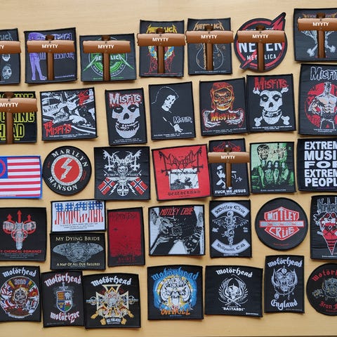Uusia, käyttämättömiä bändimerkkejä. Ommeltavia ellei muuta sanota. Mitat eivät välttämättä AIVAN millintarkkoja ole.