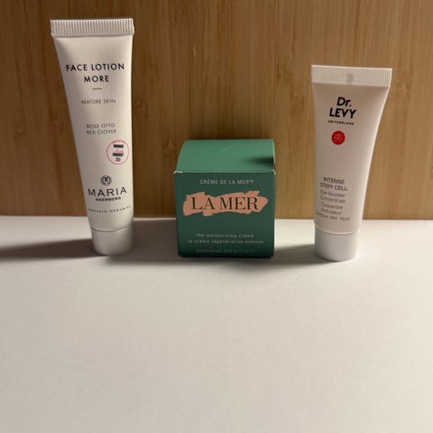 Maria Åkerberg Face Lotion More kasvovoide, sopii kypsälle iholle, sisältää ruusu-ottokukkaa ja puna-apilaa. Dr. Levy Intense Stem Cell silmänympärysseerumi, sisältää kantasolu-uutetta, tarkoitettu silmänympärysalueen hoitoon.